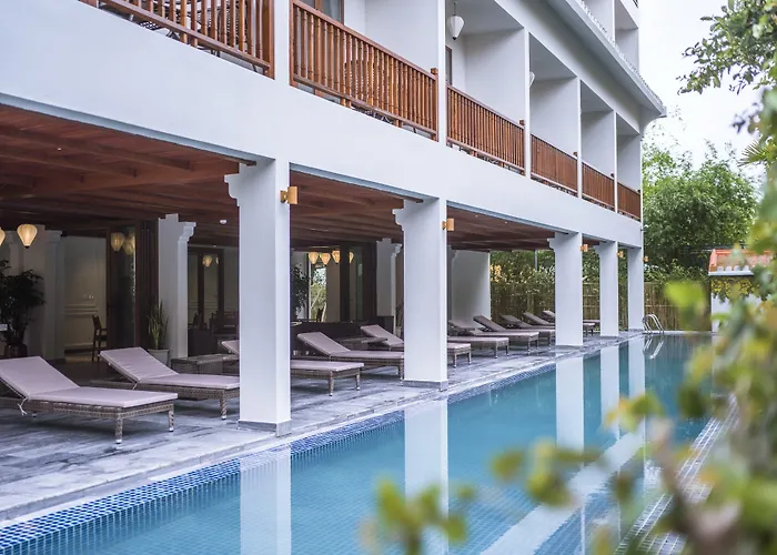3つ星Vinh Hung Old Town Hotel ホイアンは、から2.5キロメートルフック ラム パゴダの近くにあります。 来遠橋(日本橋)から徒歩でわずか14分に位置するホテルは、プールの景色を望む41室の客室を提供しています。